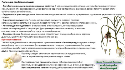 * Антибактериальные и противовирусные свойства. В чесноке содержится аллицин, который активизируется при измельчении или разжевывании. Он эффективно борется с бактериями и вирусами, даже с теми что выработали устойчивость к антибиотикам.